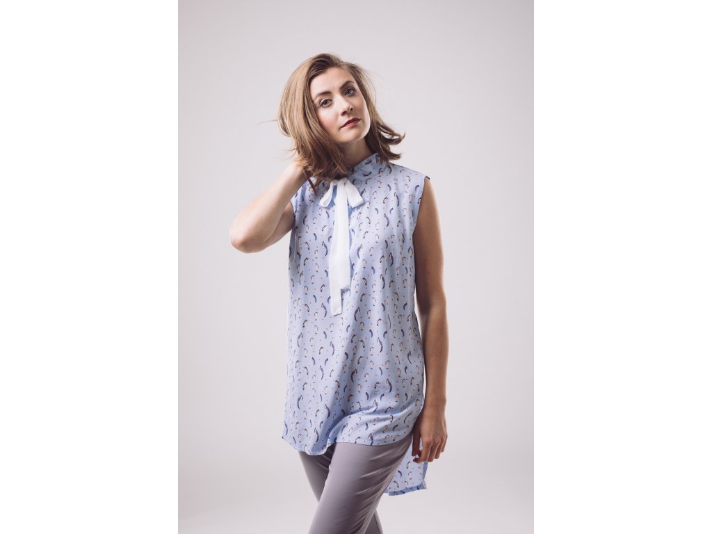 Bavlněná košile bez rukávů Arnica v černé barvě. Šifonové stuhy ve stojáčku jsou vyjímatelné. V případě zájmu i v jiné barevné variantě.