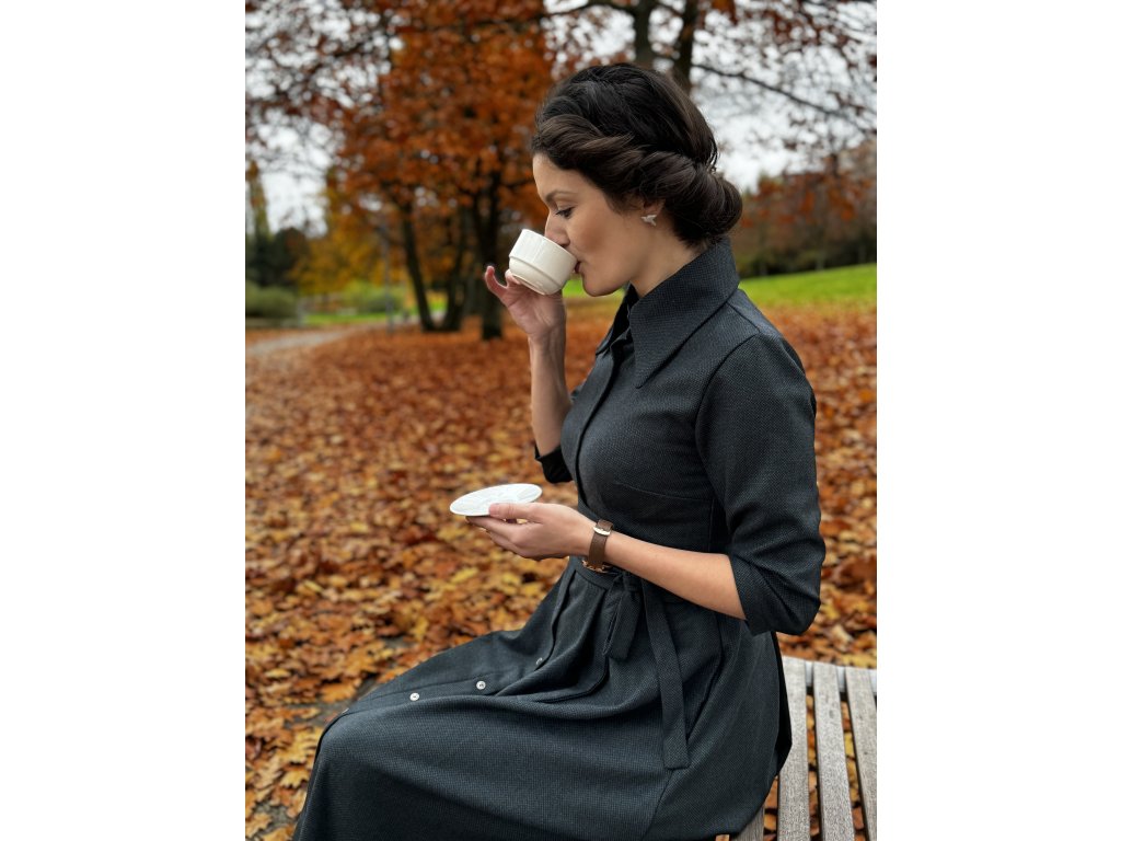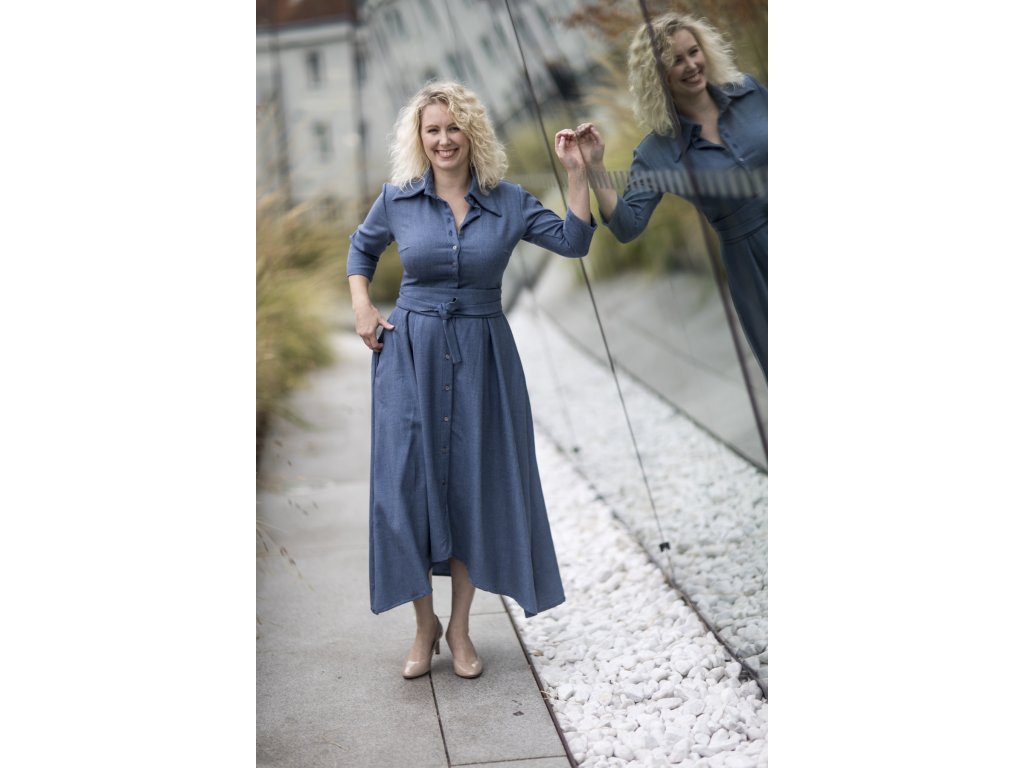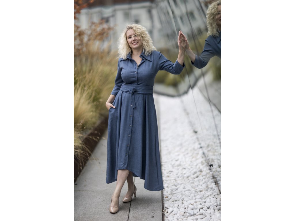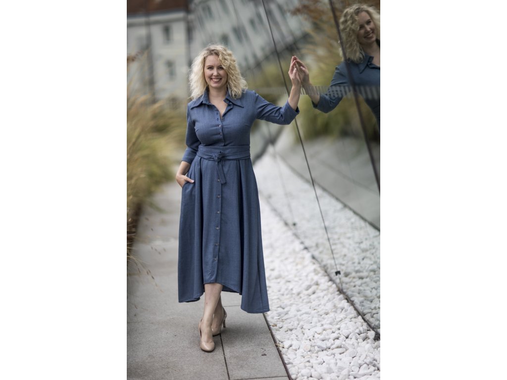 Košilové šaty Anemone jsou elegantní a přitom pohodlné dlouhé letní šaty s vypasovaným vrškem a širokou vzdušnou sukní. K šatům patří dlouhý pásek (na některých fotografiích chybí), v bocích jsou kapsy ve švech. Šaty jsou celopropínací. Pod šaty je možné vzít roláček nebo tílko či tričko a mít tak zimní elegantní outfit, který Vás zahřeje.