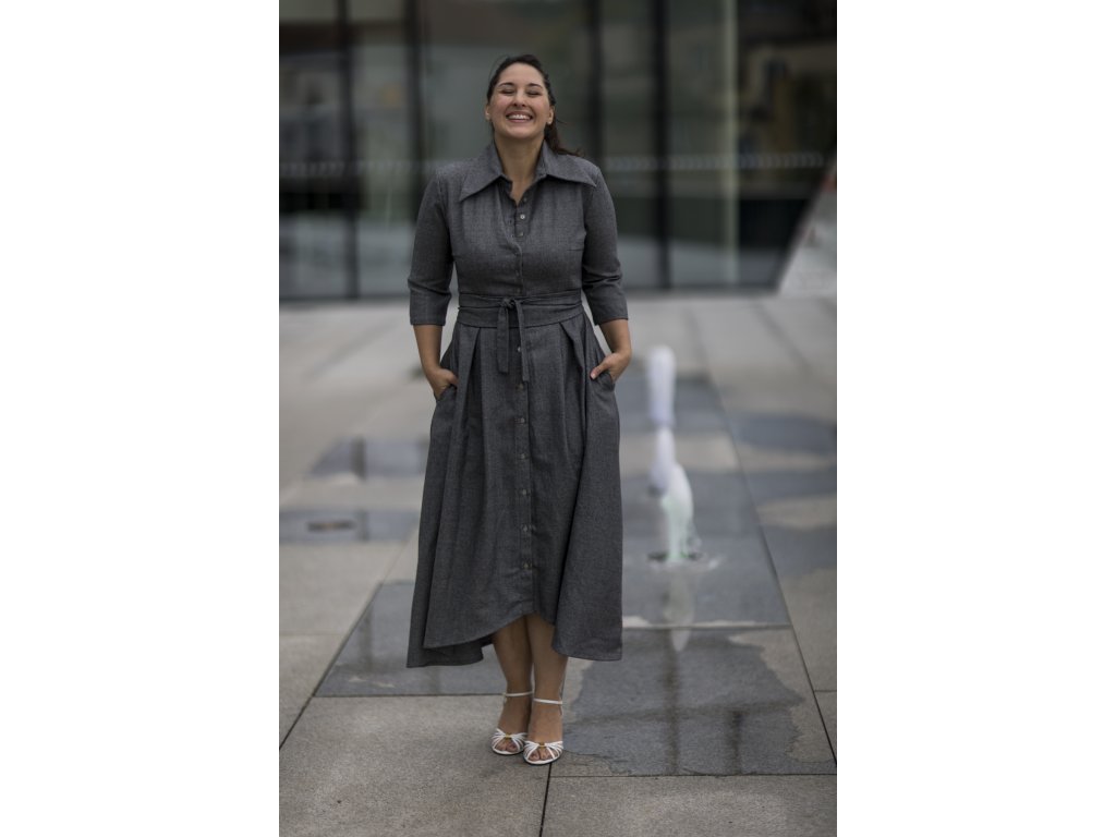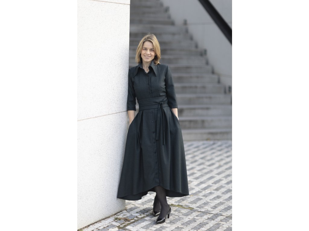 Anemone dlouhé košilové šaty s 3/4 rukávem jemná merino vlna světle šedá
