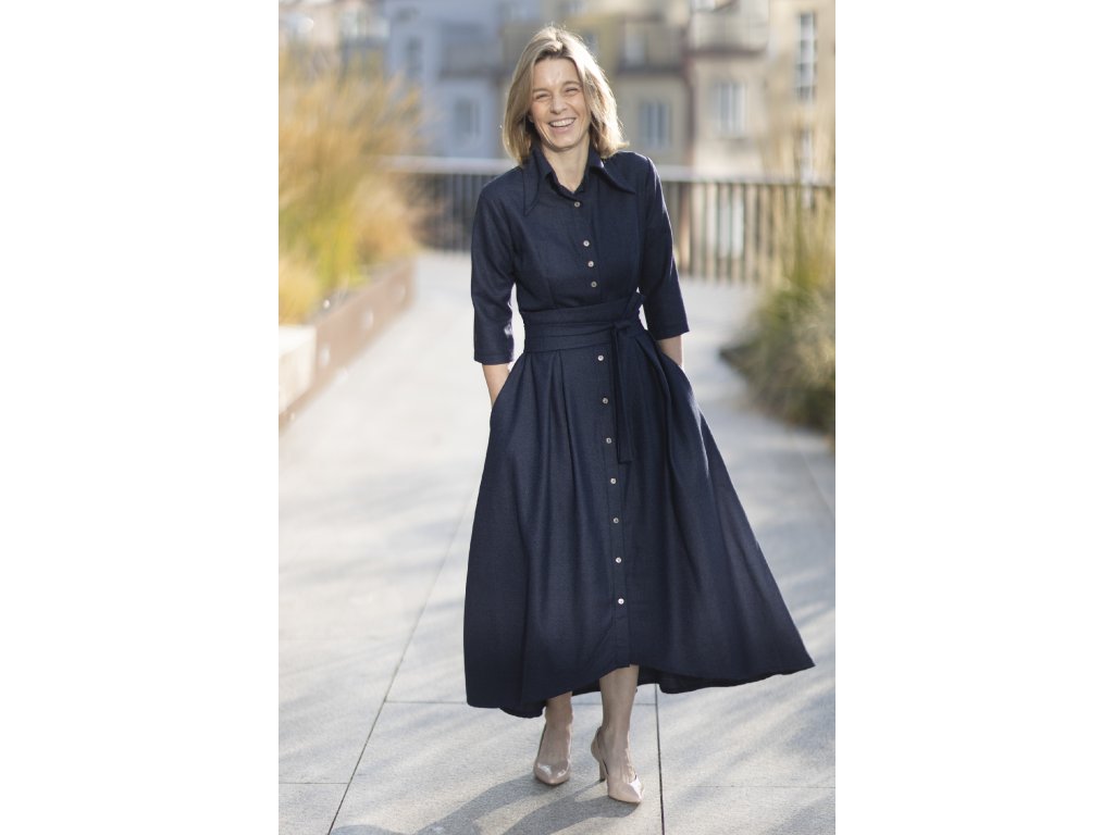 Košilové šaty Anemone jsou elegantní a přitom pohodlné dlouhé letní šaty s vypasovaným vrškem a širokou vzdušnou sukní. K šatům patří dlouhý pásek (na některých fotografiích chybí), v bocích jsou kapsy ve švech. Šaty jsou celopropínací. Pod šaty je možné vzít roláček nebo tílko či tričko a mít tak zimní elegantní outfit, který Vás zahřeje.