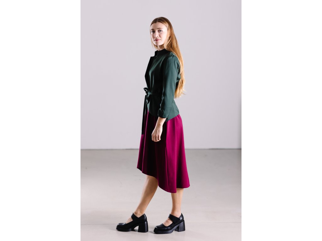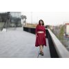 Šaty Heliantha jsou elegantní a přitom pohodlné šaty s vypasovaným vrškem a širokou vzdušnou symetrickou sukní. Šaty jsou v délce ke kolenům a k šatům patří pásek, v bocích jsou kapsy ve švech.