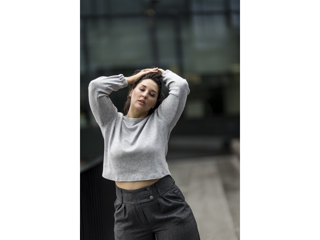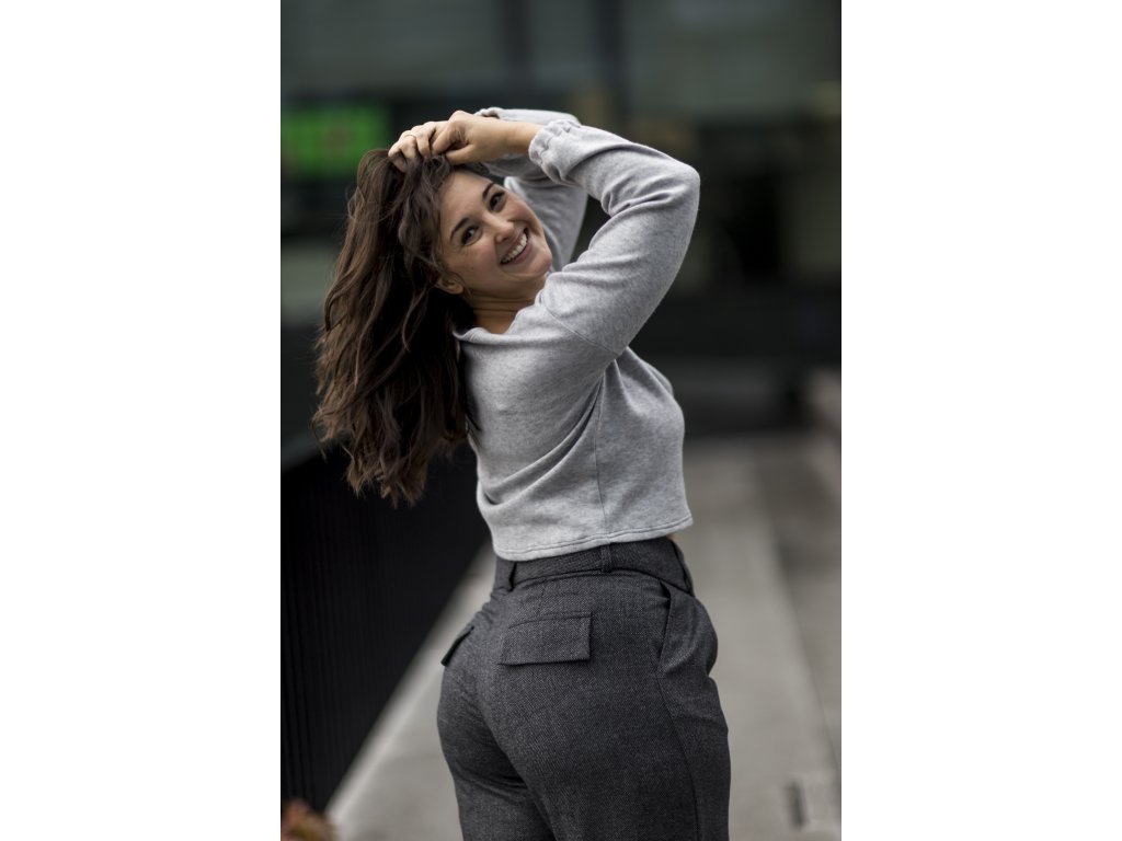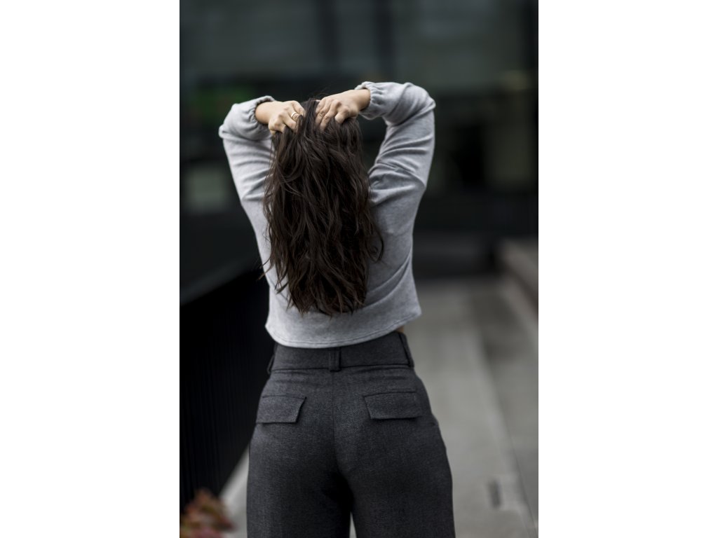 kalhoty z luxusní merino vlny vyšší pas světle šedé
