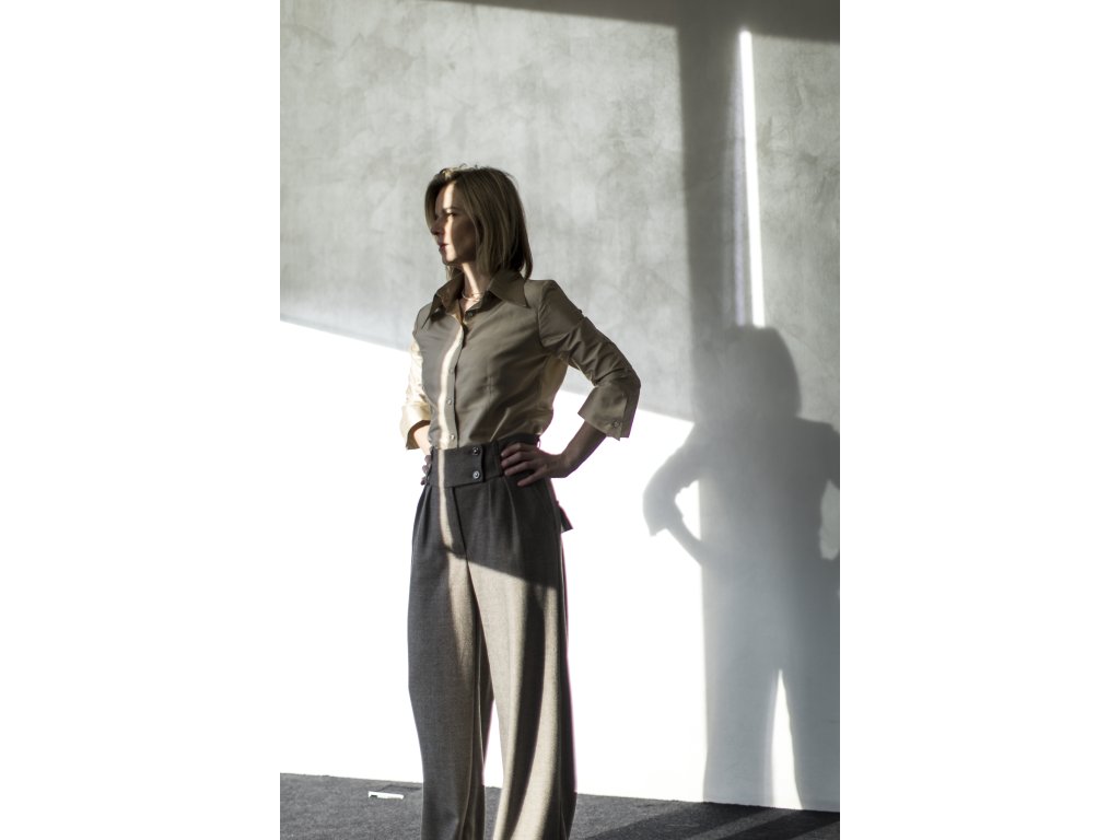 Kalhoty jsou ušité z kvalitní italské merino vlny vyšší gramáže vhodné na jaro, podzim a zimu. Ze stejné látky různých barev ráda ušiji sako, vestu nebo sukni ... můžete si tak vytvořit krásně kombinovatelné varianty zimního kostýmku. Outfit můžete doplnit košilí Chamomilla, lehčí hedvábnou halenkou nebo halenkou z hedvábného šantungu na večerní příležitosti... Kostýmek můžete oživit vázačkou nebo páskem...veškeré doplňky ráda ušiji přímo z použitých látek, aby dokonale ladily...