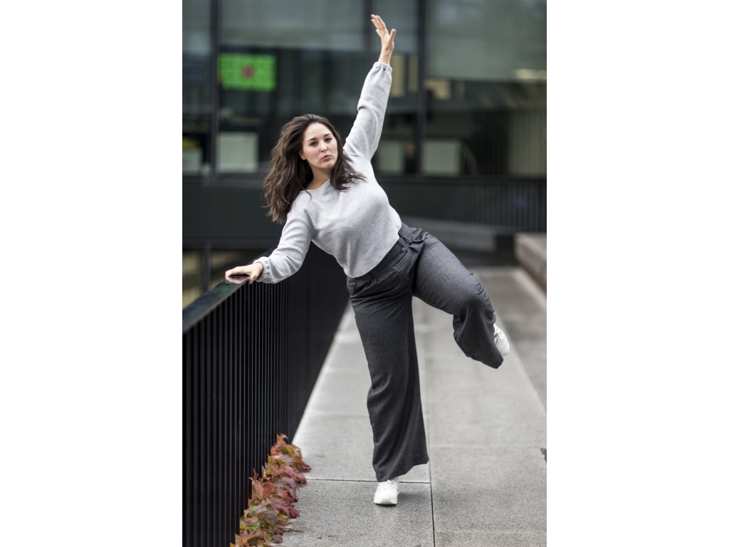 kalhoty z luxusní merino vlny vyšší pas tmavě šedé