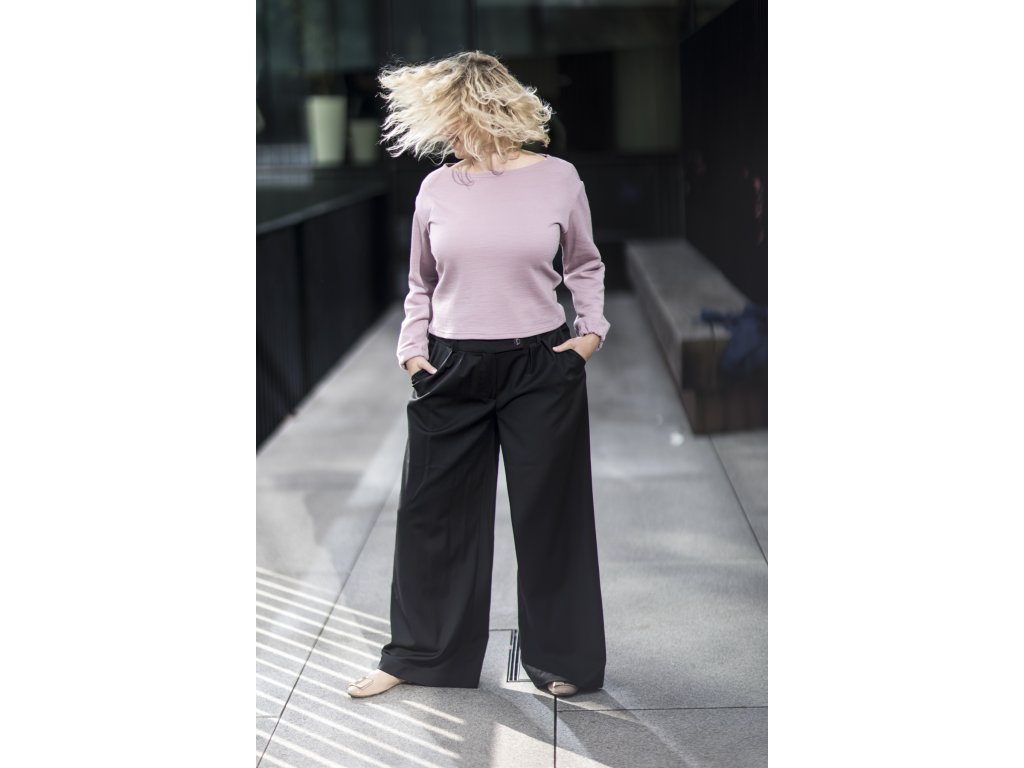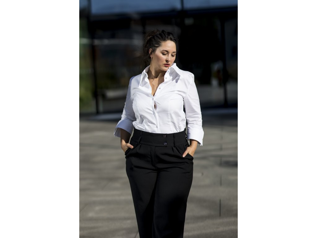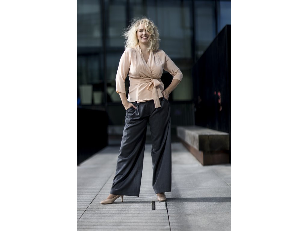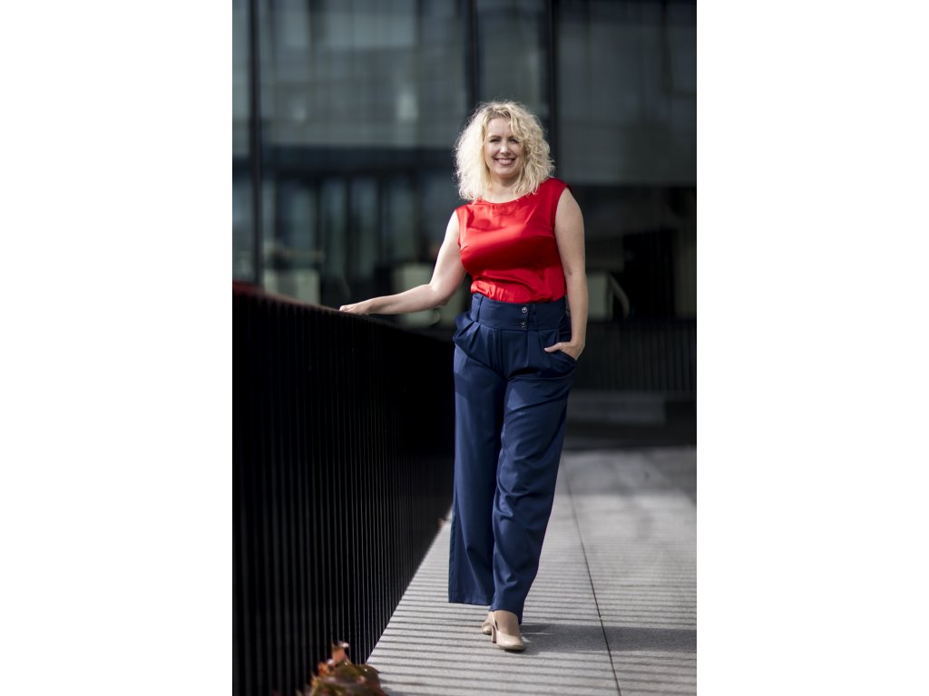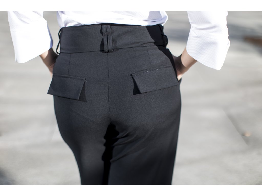 Elegantní kalhoty se širšími nohavicemi, které podtrhnou Vaši ženskost. Kalhoty můžete doplnit do kostýmku kabátkem ze stejného materiálu ve stejné nebo jiné barevné kombinaci. S kostýmkem zazáříte nejen na důležitých schůzkách, ale klidně i večer na vernisáži nebo v divadle...stačí trochu pozměnit doplňky...např. vyměnit klasickou košili za hedvábnou šantungovou halenku :)
