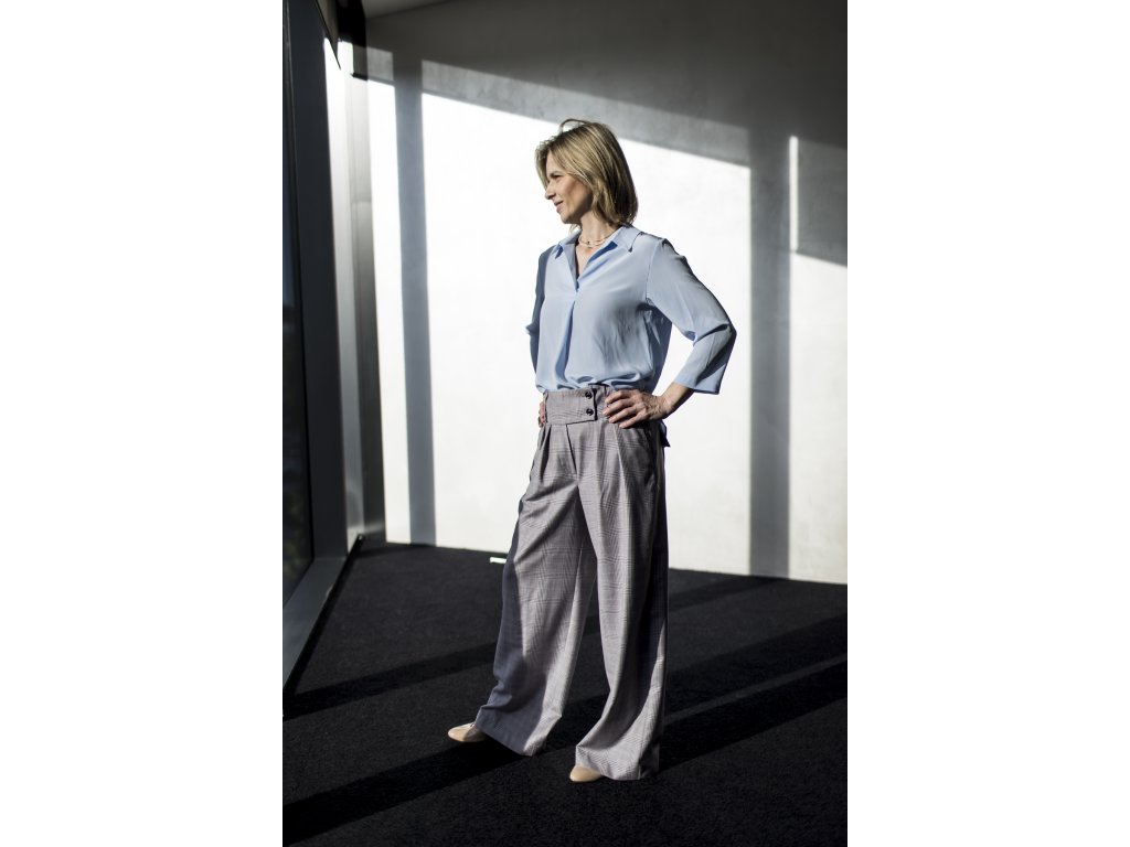 Elegantní kalhoty se širšími nohavicemi, které podtrhnou Vaši ženskost. Kalhoty můžete doplnit do kostýmku kabátkem ze stejného materiálu ve stejné nebo jiné barevné kombinaci. S kostýmkem zazáříte nejen na důležitých schůzkách, ale klidně i večer na vernisáži nebo v divadle...stačí trochu pozměnit doplňky...např. vyměnit klasickou košili za hedvábnou šantungovou halenku :)