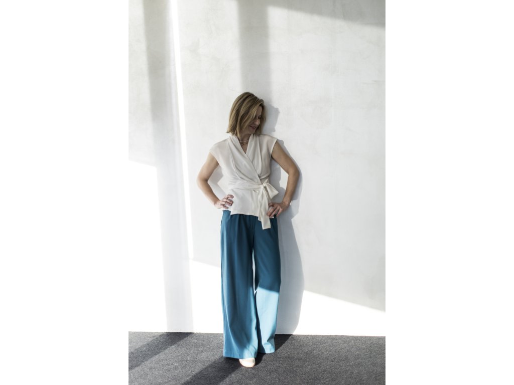 Kalhoty jsou ušité z kvalitní italské merino vlny vyšší gramáže vhodné na jaro, podzim a zimu. Ze stejné látky různých barev ráda ušiji sako, vestu nebo sukni ... můžete si tak vytvořit krásně kombinovatelné varianty zimního kostýmku. Outfit můžete doplnit košilí Chamomilla, lehčí hedvábnou halenkou nebo halenkou z hedvábného šantungu na večerní příležitosti... Kostýmek můžete oživit vázačkou nebo páskem...veškeré doplňky ráda ušiji přímo z použitých látek, aby dokonale ladily...