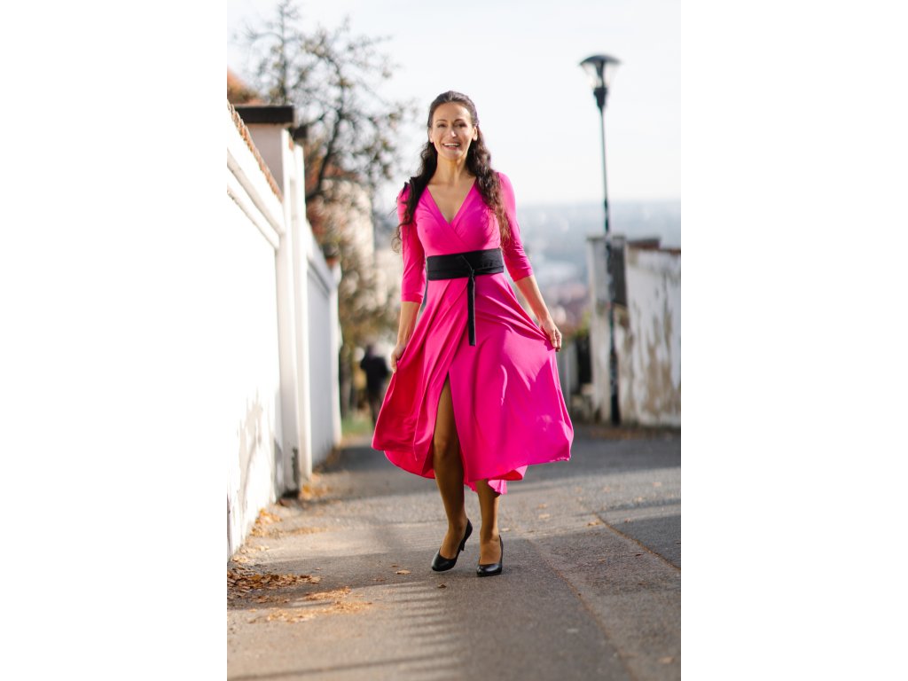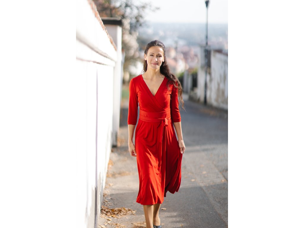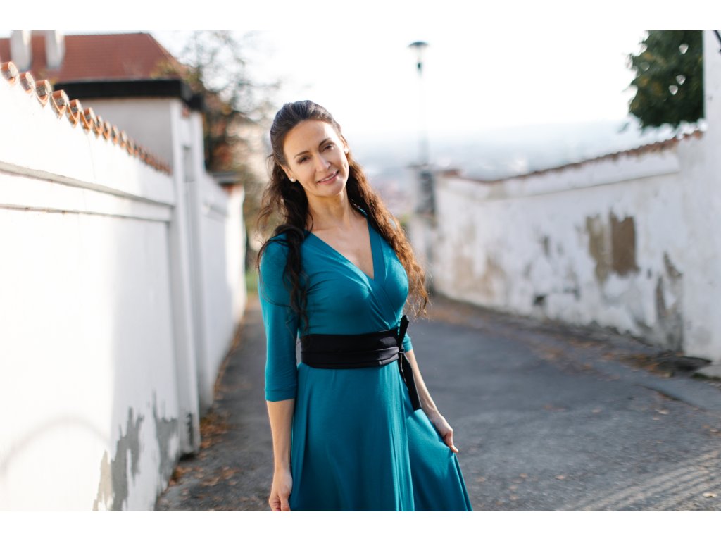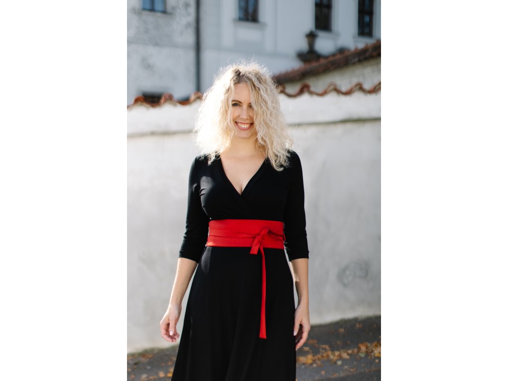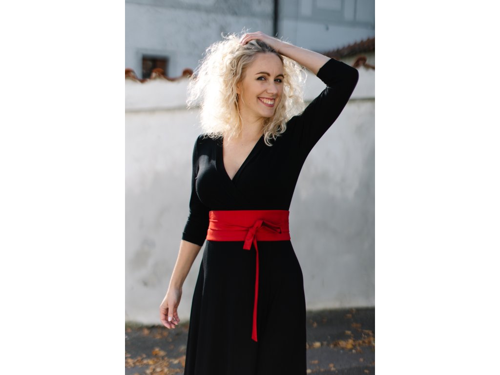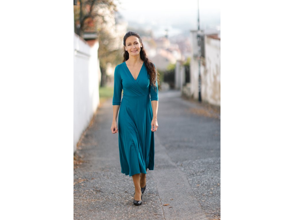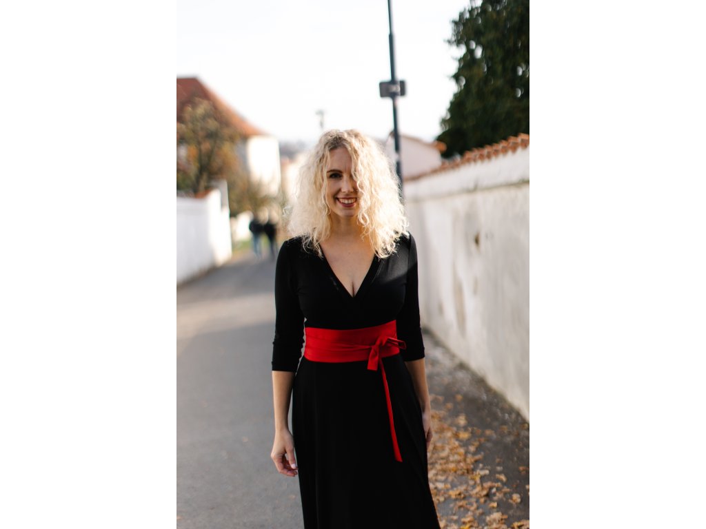 Zavinovací úpletové šaty z příjemného bambusu od českého výrobce. Přední sukňová část je dvojitá a přišitá v pase, takže se nerozevírá a nerýsuje bříško. Výstřih je olemovaný a drží tvar. Ženskou siluetu šatů podtrhne pásek dle vlastního výběru (není součástí šatů). Pásky můžete prohládnout zde: brokátový pásek