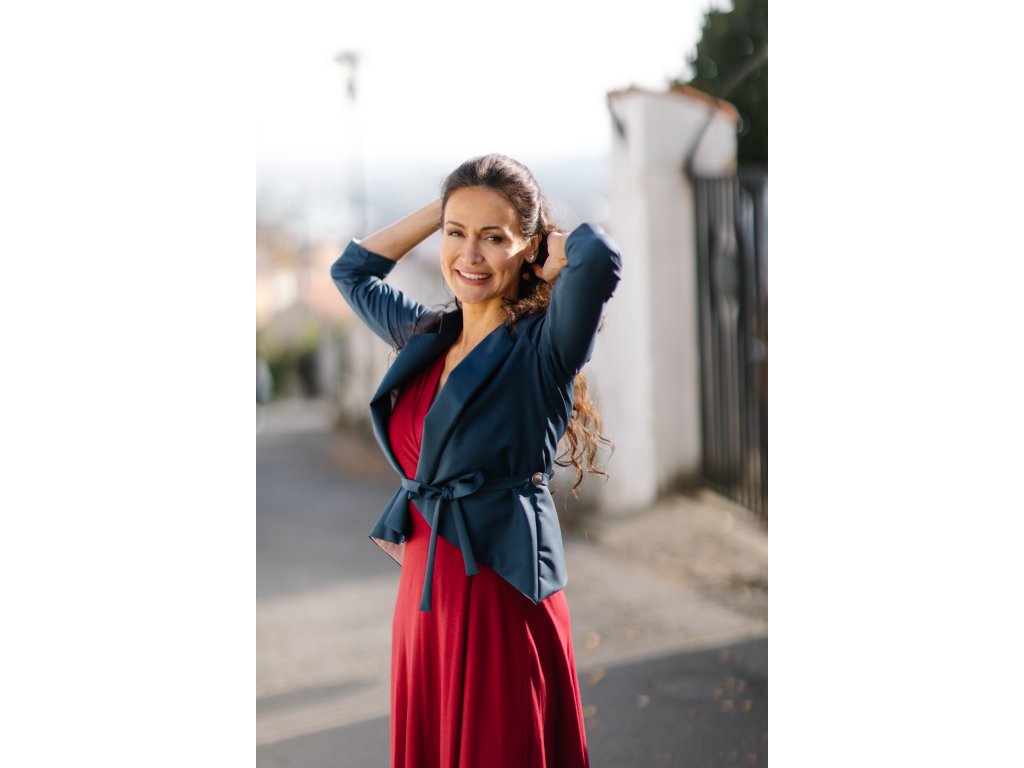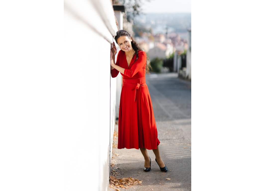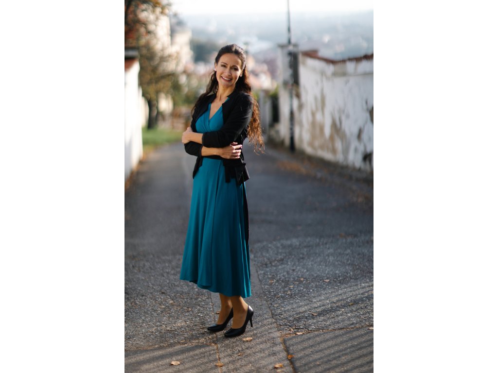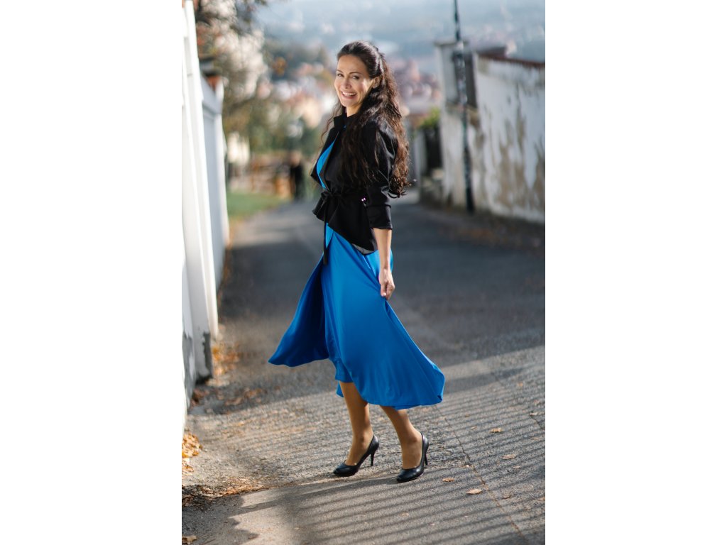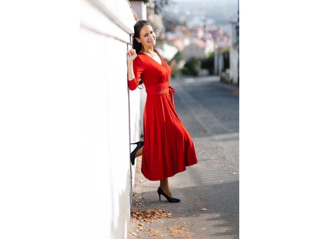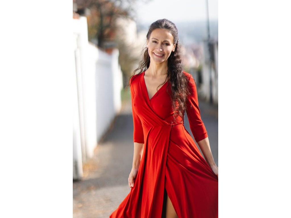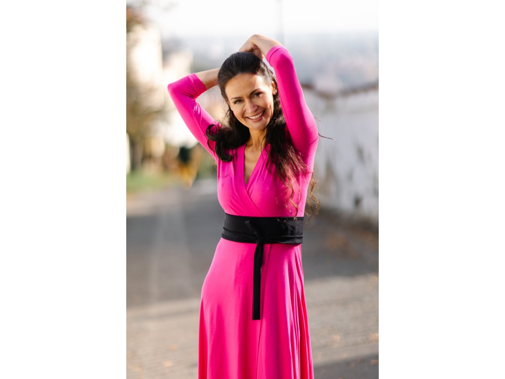 Zavinovací úpletové šaty z příjemného bambusu od českého výrobce. Přední sukňová část je dvojitá a přišitá v pase, takže se nerozevírá a nerýsuje bříško. Výstřih je olemovaný a drží tvar. Ženskou siluetu šatů podtrhne pásek dle vlastního výběru (není součástí šatů). Pásky můžete prohládnout zde: brokátový pásek