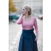 Tričko projmutého střihu s dlouhým rukávem zakončeným krajkou se skvěle hodí jako doplněk sukní, kalhot i kostýmků nebo šatovek. Krajkový rukáv vypadá krásně i jako doplněk k vestě nebo vykukuje-li zpod rukávu saka nebo svetříku.
